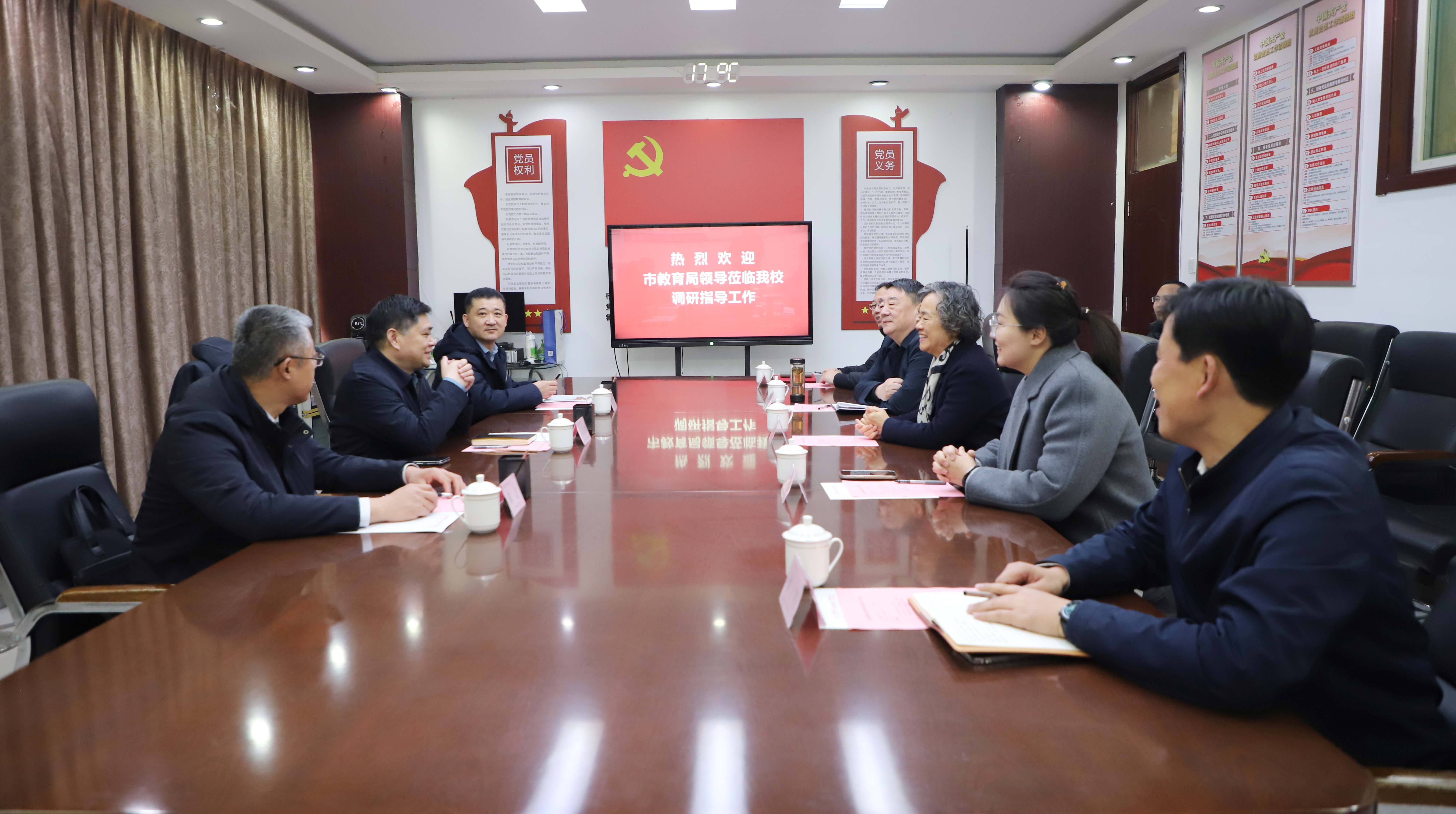1月21日下午,济南市教育局党组成员、副局长王志国,济南市教育局职业与高等教育处二级调研员刘大宝,济南市教育局职业与高等教育处副处长陈志一行来校调研。学校党委书记张硕秋,董事长聂淼,党委常务副书记、副校长李志宇,党委委员、副校长孙立明,党委组织部部长、党政办公室主任朱学兵陪同调研并座谈。