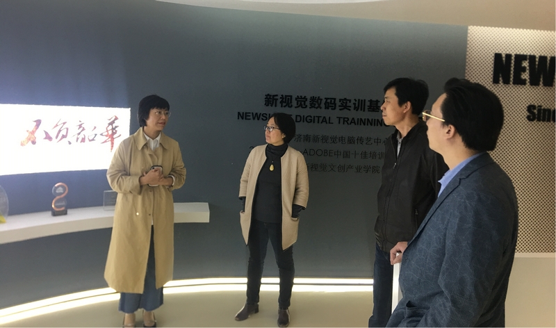 4月23日副校长孙立明、校长助理魏广、应用设计学院副院长盛玲赴山东新视觉数码科技有限公司就校企合作项目进行考察调研。