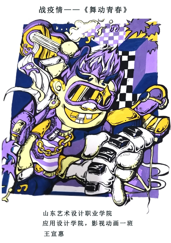 ▲ 战疫情——舞动青春(作者:王宣惠,指导老师:黄建华,获得大学组影视动漫设计类优秀奖)