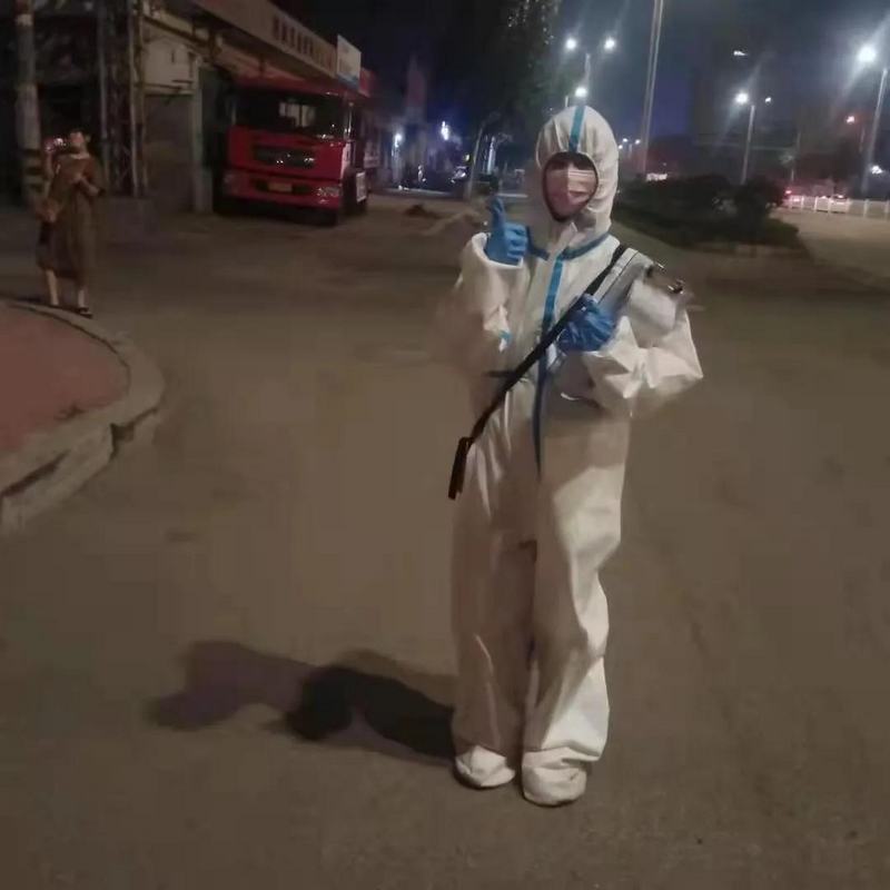 吴佩瑶同学放假回到家乡严守当地防疫要求,于7月底完成居家隔离。8月初,她在网上看到了烟台市芝荹区环海路幸福街道发的志愿者招募信息,毫不犹豫果断报名。第二天她便接到通知担起志愿服务工作。吴佩瑶同学每天或身着“红马甲”,在当地党员干部的带领下,负责社区防疫宣传,做好疫情信息的收集、上报,做到不遗户、不漏户;或冒着酷暑高温穿着防护服,为出入社区人员测量体温、排查疫区来往人员等。