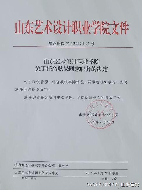 会议宣布:任命许志鹏为团委书记、学生处副处长;任命曹建华为应用设计学院常务副院长;任命袁明鉴为应用设计学院教研室主任;任命耿旻为宣传部新闻中心主任。